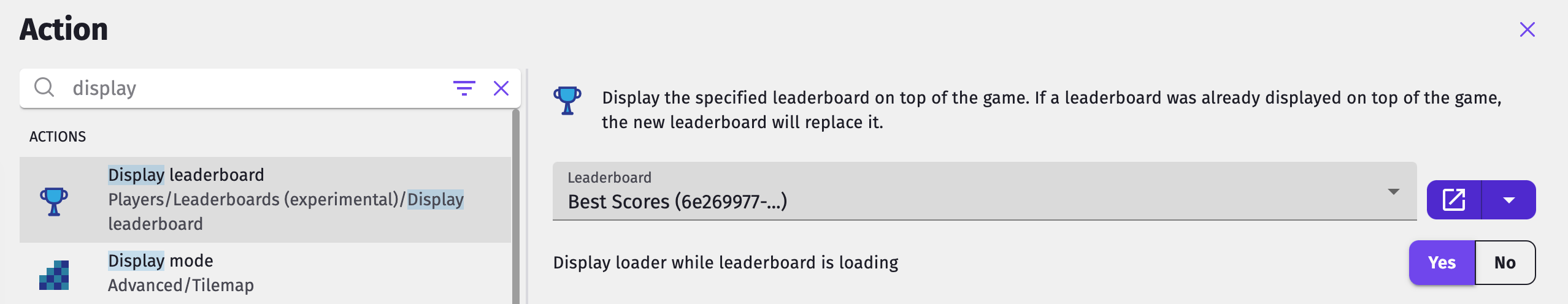 In this case, don't forget to activate the option to display the leaderboard loader, so that your players wait until the leaderboard is loaded and are not confused.